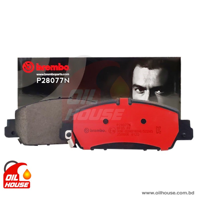The BREMBO FRONT BRAKE PAD P28077N FOR HONDA is a superior offering from Brembo’s Premium Ceramic (NAO) range. These pads are specifically developed to provide a stable friction coefficient across a wide range of temperatures, making them ideal for the humid and high-traffic conditions found in Bangladesh. The BREMBO FRONT BRAKE PAD P28077N FOR HONDA features advanced noise-dampening technology that eliminates squeal and vibration, providing a whisper-quiet ride. When you buy from Oil House Bangladesh, you are choosing an authentic Italian-engineered product that protects your rotors and keeps your alloy rims free from black brake dust.
